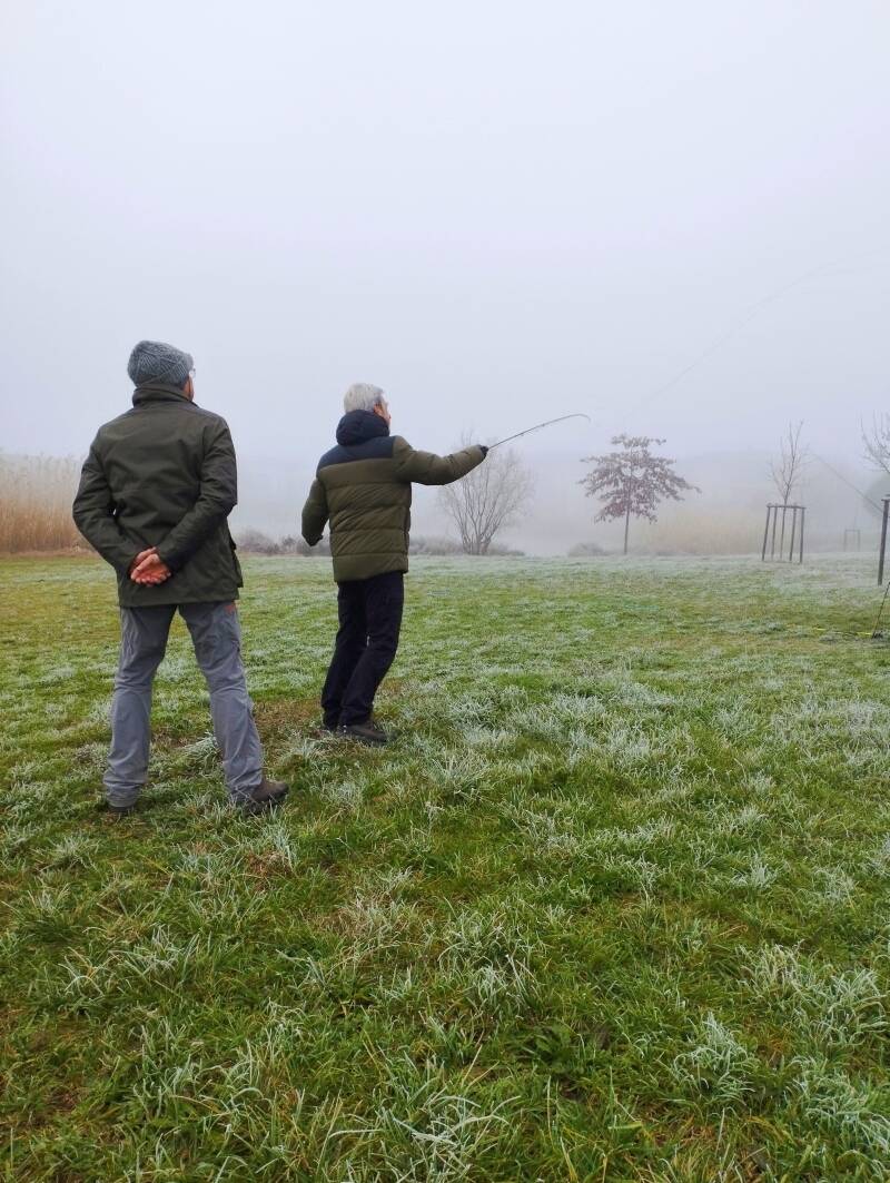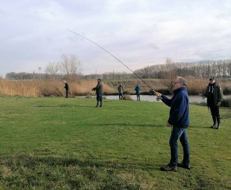 Les moniteurs apprennent aux nouveaux adhérents à maitriser leur fouet ou ceux qui leur sont prêtés par le Club en pratiquant différentes techniques de lancer qui leur permettront plus tard de poser une mouche près du poisson dans des conditions de pêches parfois compliquées.